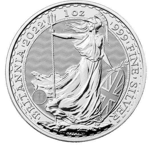 Reverse designs on the 2022 1 oz Silver Britannia Coin offer Philip Nathan’s depiction of Britannia. Created in 1987 for the debut of the gold series, the image shows Britannia standing along the coast with the Union Jack shield and an olive branch in her left hand, as well as the trident in her right hand.