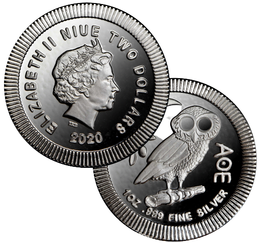 The Niue Athena Owl Series is not only an exciting collection inspired by an ancient coin design, but it is also one of the few stackable silver coins in the world that is issued on an annual basis. Introduced in 2017, the series continues to attract more investors with each release. – The design of the Niue Athena Owl coin is based on the Athenian tetradrachm coin. This form of silver currency was introduced around 525 BCE as the city-states of Greece transitioned from the didrachm to the tetradrachm. By 499 BCE, the design of the tetradrachms featured a right-profile bust of Athena on one side, with the owl of Athena on the other. The design used today is an exact replica of that ancient design.