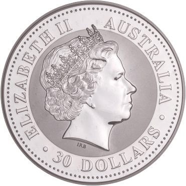 On the obverse of the 1 Kilo Australian Silver Kookaburra coins is the effigy of Queen Elizabeth II. Australian coinage from 1990 to 1997 in this series feature Raphael Maklouf’s third-generation portrait of Queen Elizabeth II. Coins issued in this series from 1998 to present include the fourth-generation design from Ian Rank-Broadley.