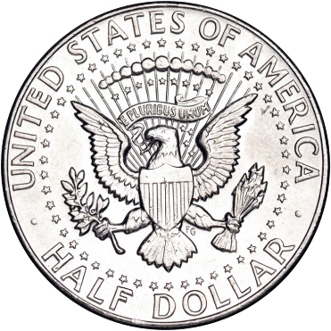 The obverse of the silver Kennedy half dollar features a bust portrait of President Kennedy surrounded by the word “LIBERTY”. The motto “IN GOD WE TRUST” crosses his neckline. At the bottom of the coin is the date of issue, except for coins minted in 1975 and 1976. In these years, the dates “1776-1976” are there to commemorate our nation’s Bicentennial. The coin’s reverse features the Presidential Coat of Arms which the United States Mint has used on various medals that it has minted. The denomination of the coin is listed at the bottom. The only years that did not feature this design were 1975 and 1976. Kennedy half dollar coins minted during these years featured the Independence Hall in Philadelphia to commemorate the Bicentennial.