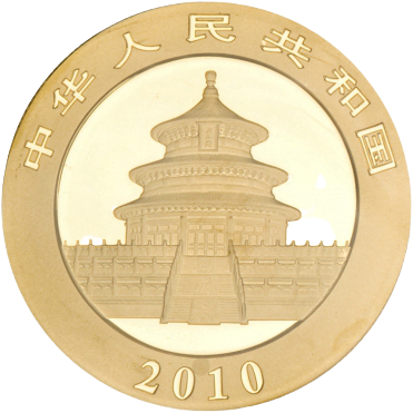 Design of the Gold Chinese Panda – The main obverse (front) design of the panda never changes. It features Beijing’s famous Temple of Heaven (Tien Tien) along with the date of issue. Chinese characters rest above the temple’s roof. The design on the coin’s reverse (back) changes annually, but it always features the endangered Giant Panda. The only year the design did not change was 2002; the rotation began again in 2003. The reverse also features the size, gold fineness, and monetary amount.