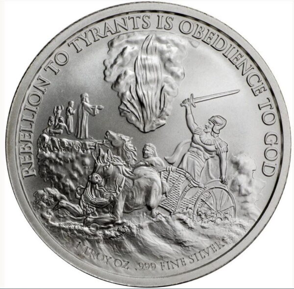 The reverse captures Franklin’s original design and motto. The commemorative round bears the weight of one troy ounce and fineness of .999 Silver.